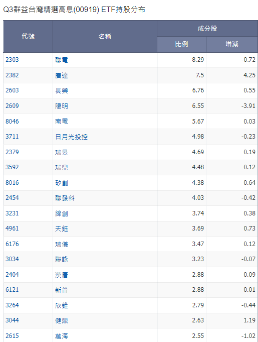 (1)群益台灣精選高息被借券賣出了許多,而這ETF的主要持股有聯電、廣達、長榮、緯創等股票,所以航運股與ODM廠請小心可能下跌。