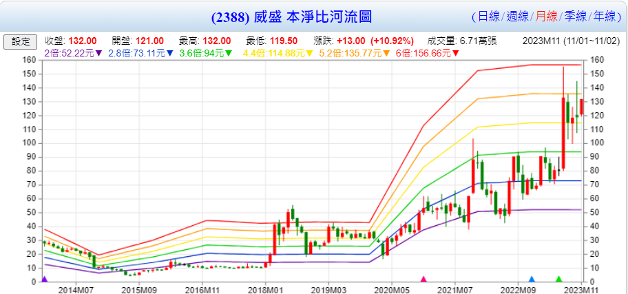 2.以本淨比來說這間公司已經來到了5.06倍,如果以20%的股東報酬率複利成長,她需要9年的時間。屬實有點高,因為這間公司除了賣專利那些年之外都沒有達標過。(資料來源於台灣股市資訊網)