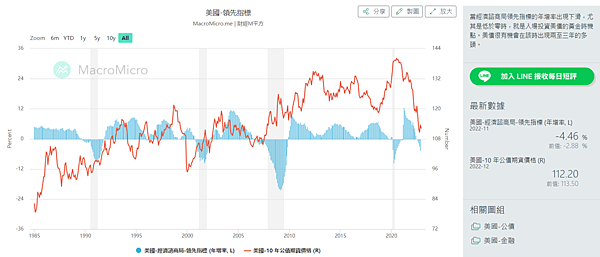 可以再看上圖這張美國經濟領先指標,只要當美國進入衰退後,很難再看到債券會有進一步的下跌。