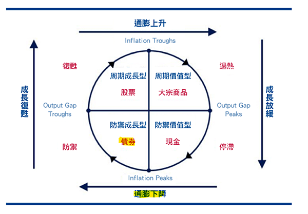 從當代價值投資這本書上(非常推薦購買閱讀,點擊購買),我可以清楚知道,當我預期經濟走緩時,可以購買的商品是下面兩個框框裡的。目前唯一不確定的就是通膨到底會不會繼續下降,而這應該就會是2023年投資人績效差異的主因了。